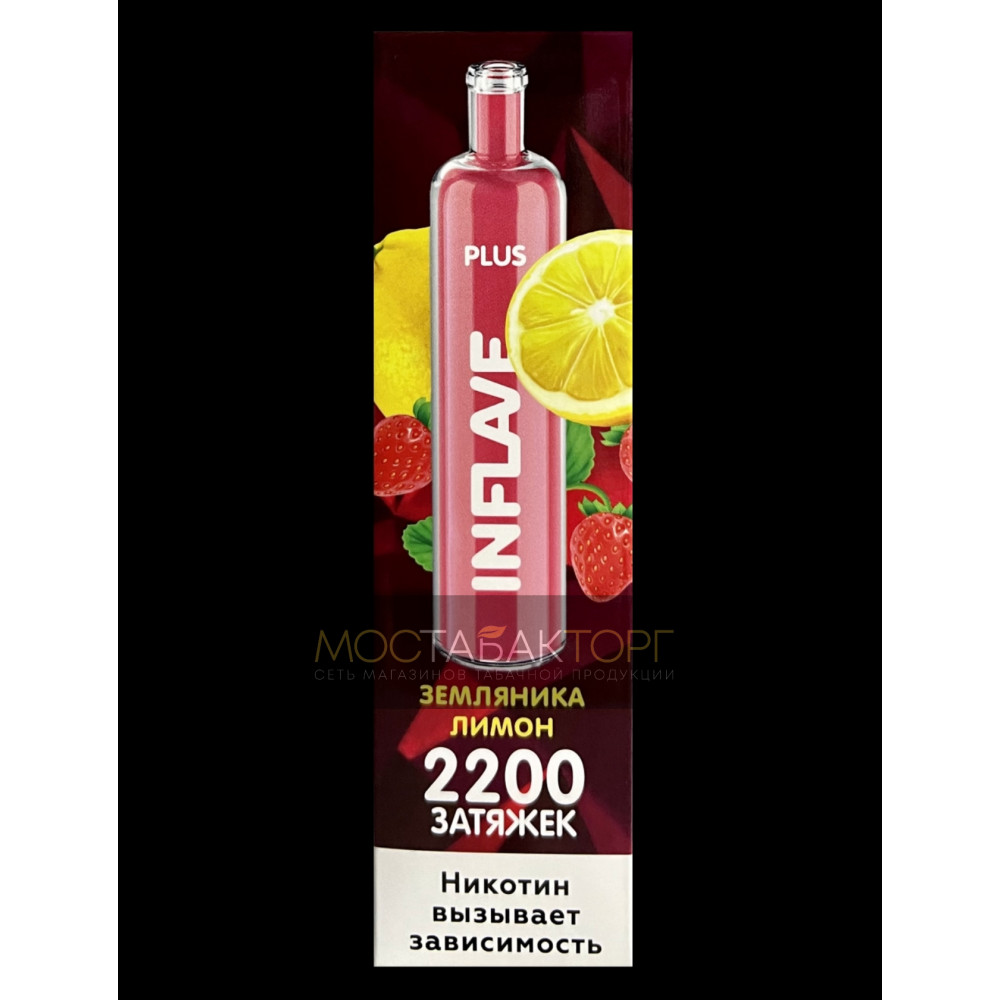 Электронная сигарета Inflave Plus 2200 затяжек Земляника Лимон.